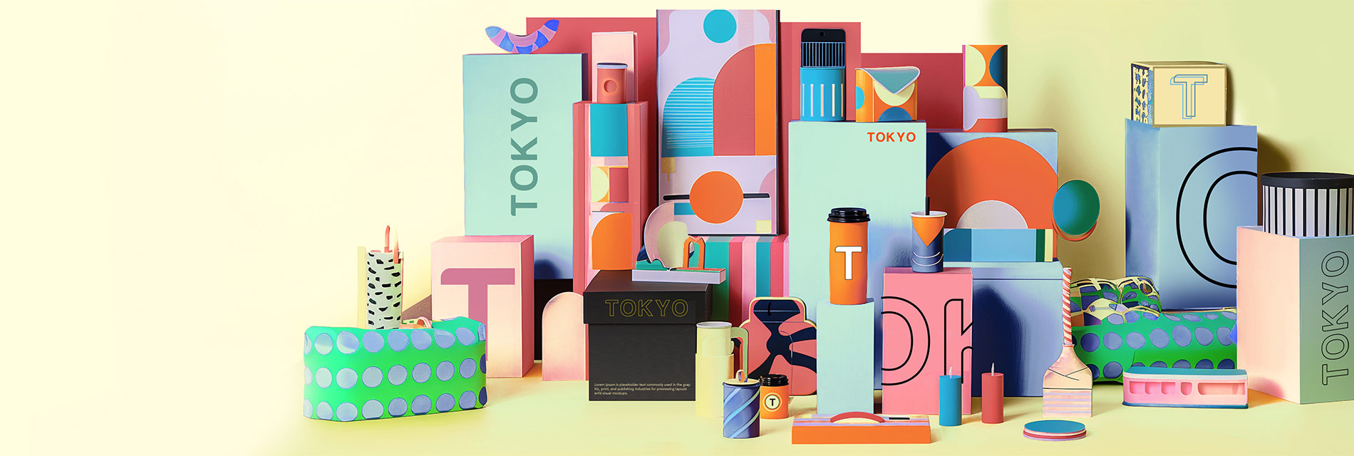 Promotional items such as; packagings for creative mailings, clothing, ceramics, bags and electronics.
